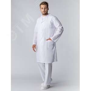 Халат мужской Симпл-001 (ткань Смесовая,120) MedLine, белый темно-синий, 56-58 170-176