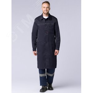 Халат мужской рабочий (ткань Диагональ,195), темно-синий, 52-54 170-176