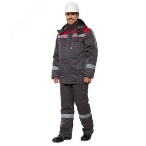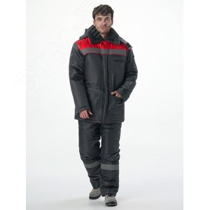 Костюм зимний Труженик-Ультра-2 (тк.Оксфорд) п/к, т.серый/красный 64-66 170-176