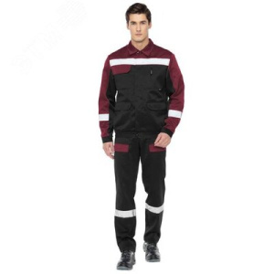 Костюм мужской Спецус с полукомбинезоном цв. черный-бордовый, р. 112-116/170-176