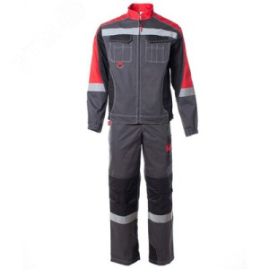 Костюм ФОРМУЛА с СОП летний куртка ткань, полукомбинезон, темно-серый с красной и черной отделкой 52