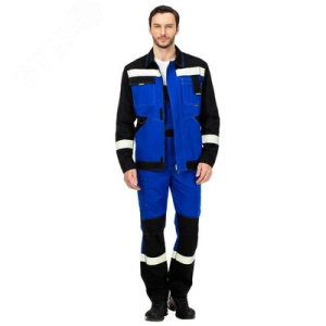 Костюм мужской (комплект) ФОРМУЛА КОТТОН ФБ1 куртка, брюки, Цвет: т/синий, василёк и черный (44-46)