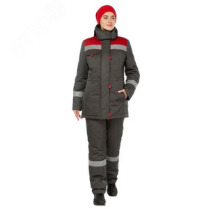 Костюм женский утепленный Тимбер с бр. цв. т.серый-красный, р. 88-92/170-176