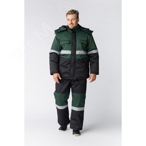 Костюм зимний Профи-Норд (ткань Смесовая,250) полукомбинезон, черный зеленый, 48-50 182-188