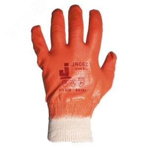 Перчатки, полное нитрил. покр., хлопк. подкладка, оранжев., размер M (12пар)