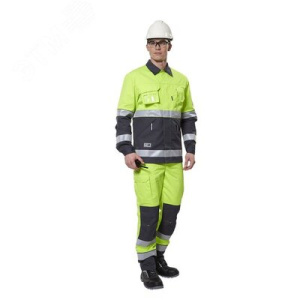 Костюм сигнальный Альянс с полукомбинезоном цв. флуоресцентно-лимон с синим, р. 120-124/170-176