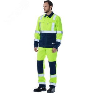 Костюм сигнальный Альянс с полукомбинезоном цв. флуоресцентно-лимон с синим, р. 120-124/182-188