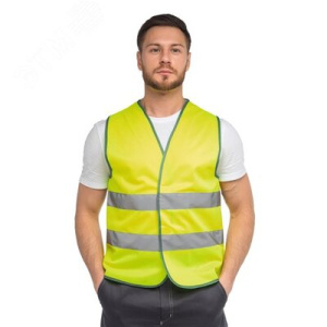 Жилет сигнальный желтый, 2 горизонтальные и 2 вертикальные полосы, 60 гр, размер XL