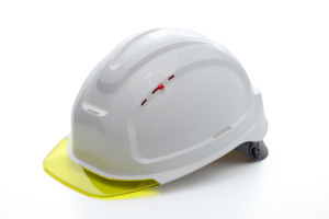 Защитная каска ФОРТ укороченный козырёк, храповый механизм, слоты для крепления наушников и щитков