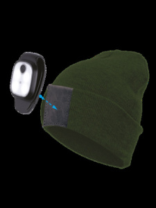 Шапка с фонарем, цвет хакки, фонарь-клипса съемный, красный и белый цвет свечения + SOS (мигающий кр