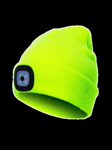 Шапка с фонарем желтая, универсальный размер. Съемный фонарь, 3 уровня яркости