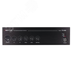 Усилитель, 6 зон c регулировкой уровня выходного сигнала, 60 Вт/100В,  2 микр., 3 Aux входа, 1  Aux