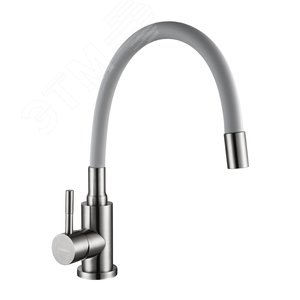 Смеситель для кухни шаровый, с гибким силиконовым изливом серый, нержавеющая сталь