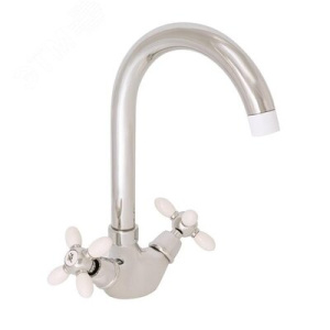 Смеситель для кухни с 2-мя рукоятками с высоким изливом цветные  ручки Белый