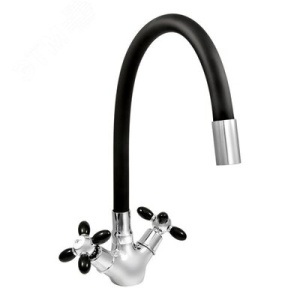Смеситель для мойки двуручный с гибким силиконовым изливом (черный), креп. гайка,