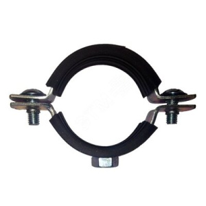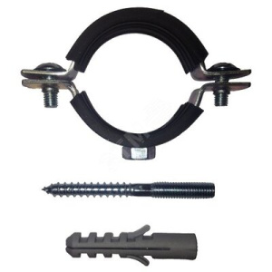Хомут сантехнический с шпилькой и дюбелем 1'3/4 (54-58мм) гайка М8 оцинкованная сталь с резиновым у