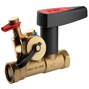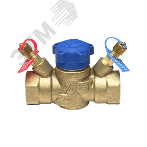 Клапан балансировочный латунный муфтовый с двумя отводами для измерения, внутр резьба, корпус латунь