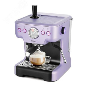 Рожковая кофеварка КТ-7171 поможет приготовить кофе эспрессо, капучино или латте. На панели управления имеются все необходимые для работы кнопки, а также манометр. Регулятор подачи пара служит для подачи пара через стимер. Индикатор мигает, когда бойлер разогревается для подачи пара, и горит непрерывно, когда бойлер нагрет. Вместительный резервуар для воды объёмом 2,7 л легко снимается и наполняется водой. Если вода в резервуаре закончится, об этом сообщит специальный индикатор отсутствия воды. Поддон для сбора капель с решёткой из нержавеющей стали легко снимается, моется и устанавливается обратно. В поддоне установлен красный поплавок. Если поддон заполнился водой, то поплавок всплывет выше решётки, это значит следует слить воду из поддона. В комплекте к рожковой кофеварке идут два фильтра, рожок, мерная ложка, темпер, булавка и щётка для очистки.