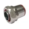 Аксессуар муфта жесткая труба-металлорукав, для системы металлических труб Cosmec. DT 40 мм. DN35. Никелированная латунь. IP66/67. Используется для герметичного соединения жестких стальных труб с металлорукавами, для перехода с жесткой трубы на металлорукав при необходимости гибкого поворота трассы.