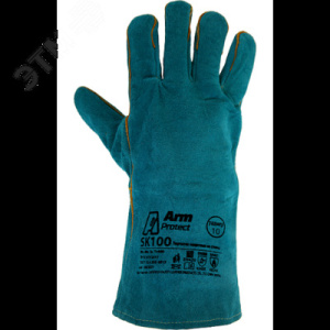 Краги спилковые пятипалые на флисовой подкладке, бирюзовые ArmProtect SK100, р.11