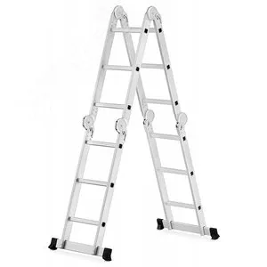 Алюминиевая лестница-трансформер повышенной прочности при небольшом весе обладает надежностью и высоким уровнем удобства во время использования. Большим преимуществом таких лестниц-трансформеров является количество возможных позиций, в которых их можно использовать и компактность, которая облегчает их перемещение и транспортировку. Регулировка производится при помощи стальных шарниров, которые обеспечивают надежную автоматическую фиксацию выбранного положения лестницы. Изделие оснащено противоскользящими рельефными ступенями, что гарантирует безопасность во время использования. В рабочем положении лестница трансформируется в лестницу приставную, свободностоящую и лестницу-помост.