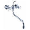 Смеситель для ванны АНТЕЙ, серия Кристи. Цвет хром. Кран-букса 12 дюйма 20 шлиц, латунная с керамическими пластинами, угол поворота 90 градусов. Излив S-образный, длинный, поворотный, длина – 350 мм. Аэратор пластиковый, съемный, внутр. резьба 22мм.