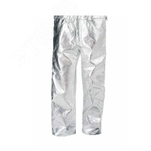Брюки из ткани из смеси преокса и алюминизированного кевларового волокна, плотностью 350 г/м2, прямые, спереди застежка с дополнительным защитным клапаном на огнестойкую контактную ленту. На поясе имеются шлевки для ремня. В комплект входят подтяжки. Уровень защиты по ГОСТ 12.4.103 - Ти,То,Тп400,Тт, по ISO 11612-2014 — А1,В1,С3,D3,E3,F1. Размеры - S, M, L, XL, XXL, XXXL, XXXXL.