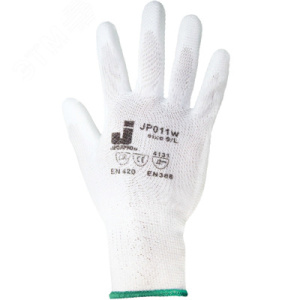 Белые защитные перчатки, полиэстер, полиурет. покр., размер XS (12пар)