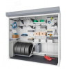 Односекционные роллетные шкафы представляют собой сборно-разборную конструкцию, состоящую из набора панелей и комплекта рольставней, которые соединяются между собой при помощи винтового соединения с внутренней части шкафа. Составные панели выполнены из конструкционной листовой оцинкованной стали ГОСТ 14918 толщиной 1,0 мм. Составные элементы окрашены порошковой краской, стандартный цвет RAL 7047, окраска дополнительно защищает элементы шкафа и придаёт необходимый вид (рольставни стандартно окрашиваются в светло-серый цвет, возможность изменения цвета рольставней по запросу). Шкаф предназначен для хранения различных вещей и инструмента, устанавливается в крытых помещениях, паркингах или под навесом на прочную поверхность (бетонная или деревянная поверхность).