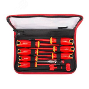 Для работ под напряжением до 1000 В. Утопленная в лезвие отвертки изоляция делает возможным монтаж винтов с глубокой посадкой. Материал стержня: сталь S2. Материал изоляции стержня: полипропилен. Трехкомпонентная эргономичная рукоятка с мягкими вставками из термопластрезины. Маркировка по типу профиля на торце рукояток. Специальная форма рукоятки с защитой от скатывания и отверстием для подвешивания. Намагниченные вороненые наконечники. Упаковка: кофр на молнии с прозрачной крышкой