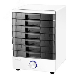 Вместительная сушилка для овощей и фруктов КТ-4940 сохранит любимые фрукты и овощи полезными круглый год! Сушилка предназначена для сушки овощей, фруктов, зелени, ягод, корнеплодов, грибов, а также хлеба. В комплекте сушилки входят 7 пластиковых поддонов для сушки овощей и фруктов, а также 7 сеток для сушки мелких продуктов, например трав и ягод. Сушилка оборудована большим мощным вентилятором, что обеспечивает равномерный горизонтальный обдув всех 7-ми поддонов. Поток воздуха направлен горизонтально, поэтому запахи продуктов с разных поддонов не смешиваются. Прибор имеет строгие формы и минималистичный, стильный дизайн. Корпус сушилки выполнен из металла и пластика, а поддоны выполнена из пластика. Сушилка компактная и не займёт много места у вас на кухне.