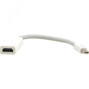 Переходник Mini DisplayPort M на HDMI F ADC-MDP/HF — это компактное устройство, которое служит для преобразования сигнала между портами Mini DisplayPort и HDMI. Адаптер оснащён коннекторами Mini DisplayPort (вилка) и HDMI (розетка), имеет длину 15 см и прямой корпус из пластика белого цвета.
