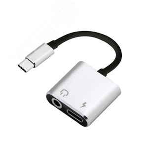 Адаптер-переходник USB 2.0 Type C на аудио CF Jack 3.5 мм, гибкий, черный-серебро