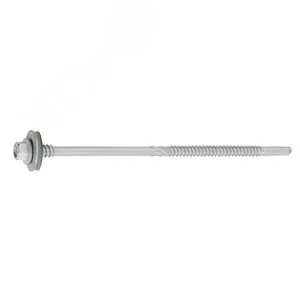 В конструкцию винта входит резьбовой стержень, шестигранная головка для закручивания и наконечник-сверло. Чтобы защитить поверхность сжимаемых деталей от царапин при сборке, при этом увеличив площадь соприкосновения элементов, шляпку крепежа дополнили прижимным фланцем. Сталь SAE 1022, антикоррозийное покрытие .