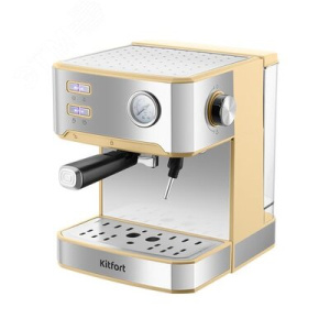 Кофеварка КТ-7443 поможет приготовить кофе эспрессо, капучино или латте. Управление происходит с помощью нескольких кнопок – ''Вкл/Выкл'', ''Эспрессо'', ''Двойной эспрессо'', ''Пар''. Манометр позволяет отслеживать давление в бойлере. Манометр показывает давление 5–7 бар при приготовлении кофе, даже если рожок и фильтр не установлены. Для приготовления пара и горячей воды в кофеварке есть стимер. Резервуар для воды ёмкостью 1,6 литра – его можно легко снять и наполнить водой в любом удобном месте. Платформа для подогрева не имеет собственного нагревательного элемента, она нагревается от бойлера. Часть платформы для подогрева, которая находится дальше от бойлера, будет слегка тёплой. В поддоне предусмотрен специальный поплавок, который поднимается и начинает выступать из решётки поддона, когда в поддоне скопилось можно жидкости. Кофеварка оснащена металлическим рожком.
