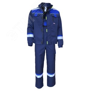 Куртка с застежкой на молнию, закрытую ветрозащитной планкой на липучках. Нагрудным накладным карманам на молнию и фигурным клапанам на липучку. Карманом в рамку с фигурным клапаном на липучку. Нижними карманами в листочку. Рукава с манжетами с частичной стяжкой на эластичную резинку. Усилительные накладки в области локтей. Куртка на поясе с регулировкой по ширине хлястиками и липучкой. Полукомбинезон с различными многофункциональными карманами. С застёжкой гульфика на молнию и в правом боковом шве на пуговицы. С эластичной резинкой по спинке. Бретели на пластиковых застежках (фастексах), регулируются по длине за счет эластичной резинки. В костюме используются светоотражающая лента 50мм и декоративные элементы контрастного цвета.
