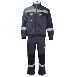 Костюм из ткани с масловодоотталкивающей отделкой, малоусадочной, дышащей, износостойкой. Изделия из этой ткани подходят для стирки и химчистки на профессиональном оборудовании, что подтверждено протоколом испытаний. Костюм с контрастной отсрочкой, с застежкой на закрытую молнию. Молния пластиковая, повышенной прочности, с металлическим бегунком, ''мелкий зуб'', цвет серебро. Нагрудные карманы с накладными комбинированными нагрудными карманами и фигурными клапанами на кнопках с пластиковой шляпкой. Нижние карманы в рельефных швах полочек. Рукава с локтевым швом и манжетами на кнопках. Брюки с поясом и шлевками с эластичной резинкой, с 5-ю многофункциональными карманами. Застёжка гульфика на молнию. Анатомические наколенники объёмные с вытачками, с подрезом под коленом. В костюме присутствует световозвращающая лента шириной 50 мм (400кд) и декоративные элементы лимонного цвета.