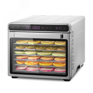 С электрической сушилкой для фруктов и овощей КТ-1925 у вас под рукой будет всегда живая еда. У сушилки есть 3 предустановленных режима. Первый режим – для поддержания тепла, где после окончания сушки продуктов устройство будет ещё работать 24 часа с температурой 35°С. На сушилке можно устанавливать температуру сушки в диапазоне 35-75°C с шагом 5 градусов. Сушилка также оснащена таймером до 24 часов с шагом 30 минут. Сушилка оборудована большим мощным вентилятором, что обеспечивает равномерный горизонтальный обдув всех 7 поддонов. Для лучшей вентиляции сушилки по бокам устройства выполнены специальные отверстия для выхода воздуха в виде красивого рисунка. Прибор имеет строгие формы и минималистичный, стильный дизайн. Корпус сушилки выполнен из металла, а дверца выполнена из сочетания стекла и металла.