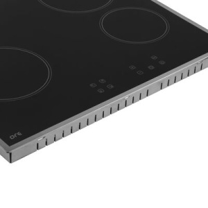 4-конфорочная стеклокерамическая варочная панель ORE CA60A отличается от базовой 60-ти сантиметровой варочной панели наличием декоративной рамки из нержавеющей стали. Функционально это та же варочная панель ORE CA60 с таймером, блокировкой панели управления и индикацией остаточного тепла. Разработана в Осло (Норвегия), изготовлена по заказу Ore Stalverk Norge AS в КНР. Гарантия на варочную панель 2 года. Цвет - черный. Материал - стеклокерамика. Габариты (ШхГ) - 590 х 520 мм. Тип конфорок - Hi-Light. Тип управления - сенсорное. Блокировка панели управления - да. Защитное отключение - да. Индикация остаточного тепла - да. Таймер отключения - да. Система быстрого нагрева - нет. W конфорок - 1,8/1,8/1,2/1,2 кВт. D конфорок - 180/180/145/145 мм