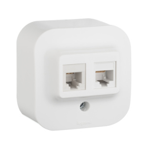 Quteo Розетка телефонная+компьютерная RJ11+RJ45 категория 5 UTP белая наружная