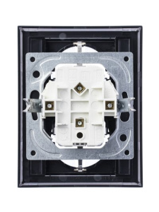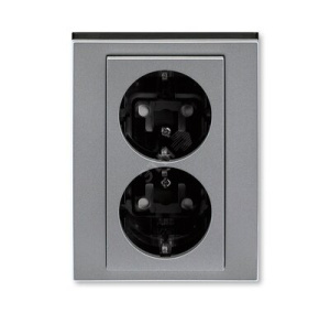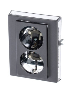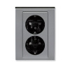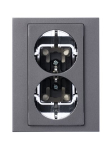 Розетка двойная Levit с заземлением со шторками 16А сталь / дымчатый чёрный