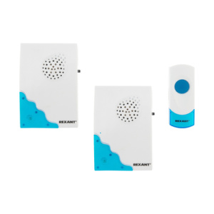 Звонок беспроводной дверной с двумя вызывными панелями 32 мелодии 100м кнопка IP44 белый/синий RX-5