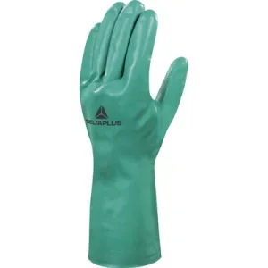 Перчатки VE801 химически стойкие нитриловые размер 10. Цвет - Зеленый. Рельефная структура на ладонной части и пальцах обеспечивает хороший захват, препятствует выскальзыванию предметов из рук. Длина – 33 см. Толщина - 0,4. Удобны при носке и эксплуатации, эффективно защищают и не вызывают дискомфорта в течение рабочего дня. мм.