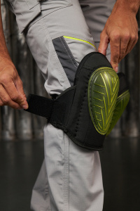Пара наколенников с гелевыми вставками и внешними противоскользящими накладками. Устанавливаются в наколенных карманах брюк или крепятся на ноге с помощью эластичных ремешков, застегиваемых с помощью контактной ленты.