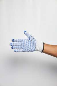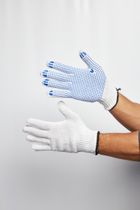 Перчатки х/б с ПВХ TP169 р.09. Цвет - Белый. Перчатки трикотажные бесшовные с эластичной манжетой с точечным покрытием ПВХ на ладонной части. ПВХ покрытие обеспечивает надежное сцепление с инструментом. Удобны при носке и эксплуатации, эффективно защищают и не вызывают дискомфорта в течение рабочего дня.