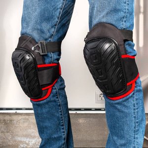 Используются для защиты коленных суставов от травм при выполнении различных работ. Внутри накладки находится силиконовый гель-наполнитель, принимающий форму колена, что обеспечивает устойчивость и облегчает нагрузку. Внешняя рифленая нескользящая накладка защищает от ударов и гарантирует устойчивость на любых поверхностях. Крепятся на ноге с помощью легко регулируемых застежек-липучек и резинового ремня. Наколенники изготовлены из дышащего неопрена. Вес комплекта - 0.50 кг