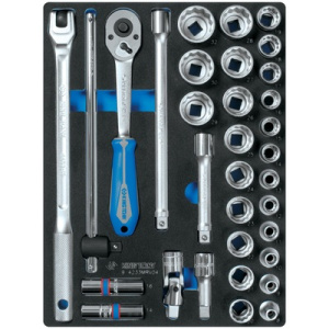 Передача крутящего момента от инструмента на крепеж, монтаж/демонтаж посаженных гаек и болтов. Размер ложемента адаптирован для размещения на полке инструментальной тележки