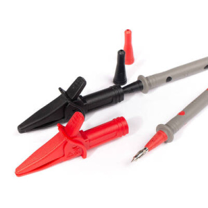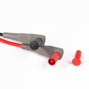 Щупы для измерения параметров электрического тока, прозвонки и тестирования электрических и электронных схем, подключения к зажимам типа 'крокодил', провод щупа - 18 AWG, черный/красный, 1200 мм. Наконечник (типа 'банан') - длина 18 мм, диаметр 4 мм. Штекер поперечного типа, диаметр контактной частии 4 мм