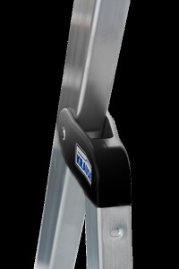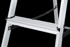 Односторонняя алюминиевая стремянка c высокой дугой безопасности, с большой противоскользящей площадкой. Прочные боковины подъемной и опорной частей из алюминиевой прямоугольной трубы. Практичный крюк для ведра с плошкой для мелких деталей. Профилированные ступеньки шириной 80 мм для безопасного подъема и удобного положения при работе. Многократное прочное заклепочное соединение ступенек с боковинами. Противоскользящие опорные наконечники обеспечивают устойчивое положение.