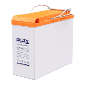 Герметизированный VRLA cвинцово-кислотный аккумулятор Delta FT 12-50 M напряжением 12В и емкостью 50Ач изготовлен по технологии AGM (с микропористым заполнителем, пропитанным электролитом). Конструкция оптимизирована для установки в 19'' и 23'' шкафы и стойки. Изготовлен из негорючего ABS пластика. Срок службы аккумулятора достигает 10-12 лет. Аккумулятор предназначен для работы в режиме постоянного подзаряда (буферный режим) или в режиме разряд-заряд (циклический режим). Обладает низким внутренним сопротивлением и саморазрядом.